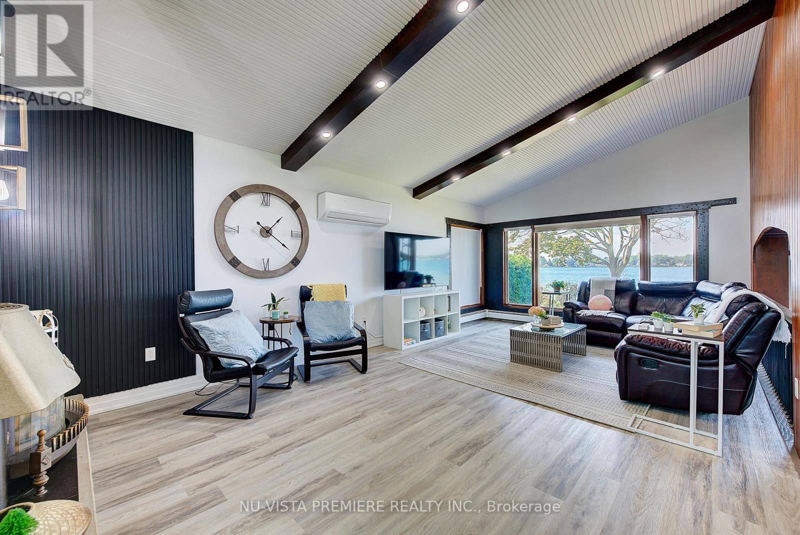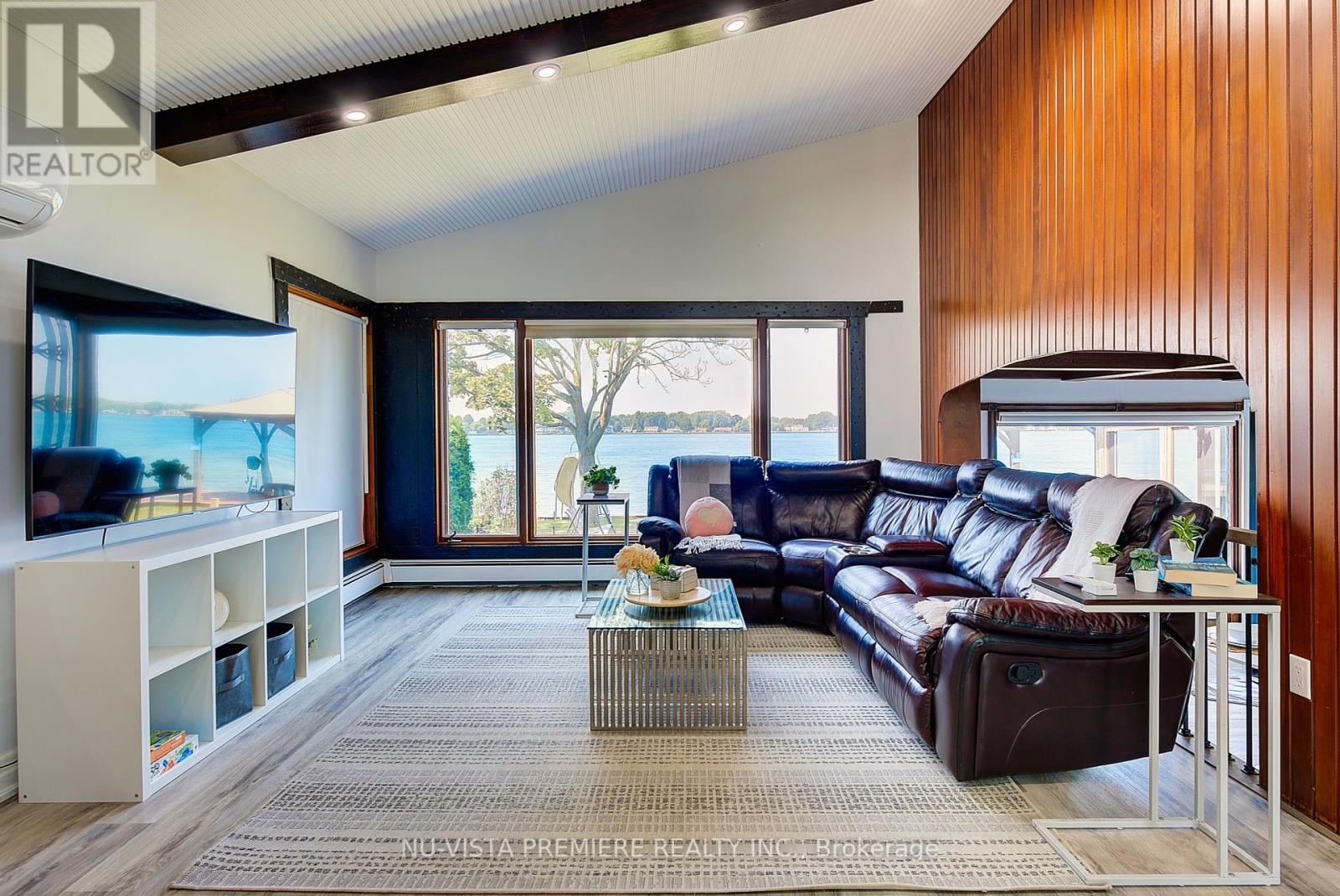 VERY RARE FIND!!! 4-season home located on a small island with only 9 other properties-- making it ultra exclusive! The island is serviced by a municipal bridge and offers high-speed fiber optic INTERNET, gas, city water & city sewers making it an ideal place to either live, retire or cottage. Located close to prestigious Fawn Island, this property features panoramic blue-water views on both sides. It includes a private canal and boat slip with a maintenance-free front-yard deck deck. The 5-level split, mid-century modern plan showcases a striking combination of stone, cathedral ceilings, and natural wood, giving it a truly unique feel. The home has been renovated from top to bottom with tens of thousands of dollars in improvements and updates. Enjoy multiple spaces to take in the water views including a huge screened-in Florida room, a 19ft x 25 ft 2nd floor deck off the primary bedroom with stairway access to the rear yard plus stairs AND a slide into the water, as well as a Gazebo deck (built with maintenance free materials) at the water edge. Inside, the home features 3 good sized bedrooms, 3.5 baths, an updated kitchen, a formal dining room, an additional eating area overlooking the lake, and a spacious great room with cathedral ceilings and a stone gas fireplace. The lower level is fully finished and features a games/family room and a full wine cellar clad in natural brick. Technical features include high efficiency split heat pump units in 2023as well as efficient gas water heating. It is very rare to find a waterfront property with its own protected canal for boat and seadoo docking while still enjoying all the amenities of a city property. Located just 4 km to Sombra, 30 km to Sarnia, 40 km to Chatham and 130 kms to London. Call today to book a private viewing of this spectacular property! (id:4069)