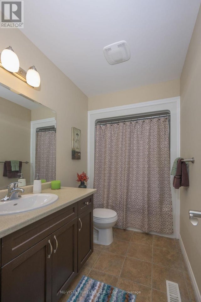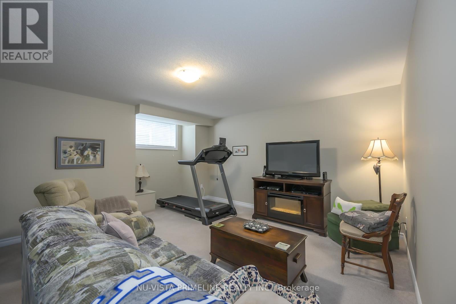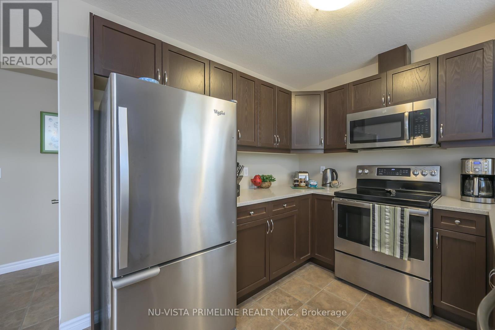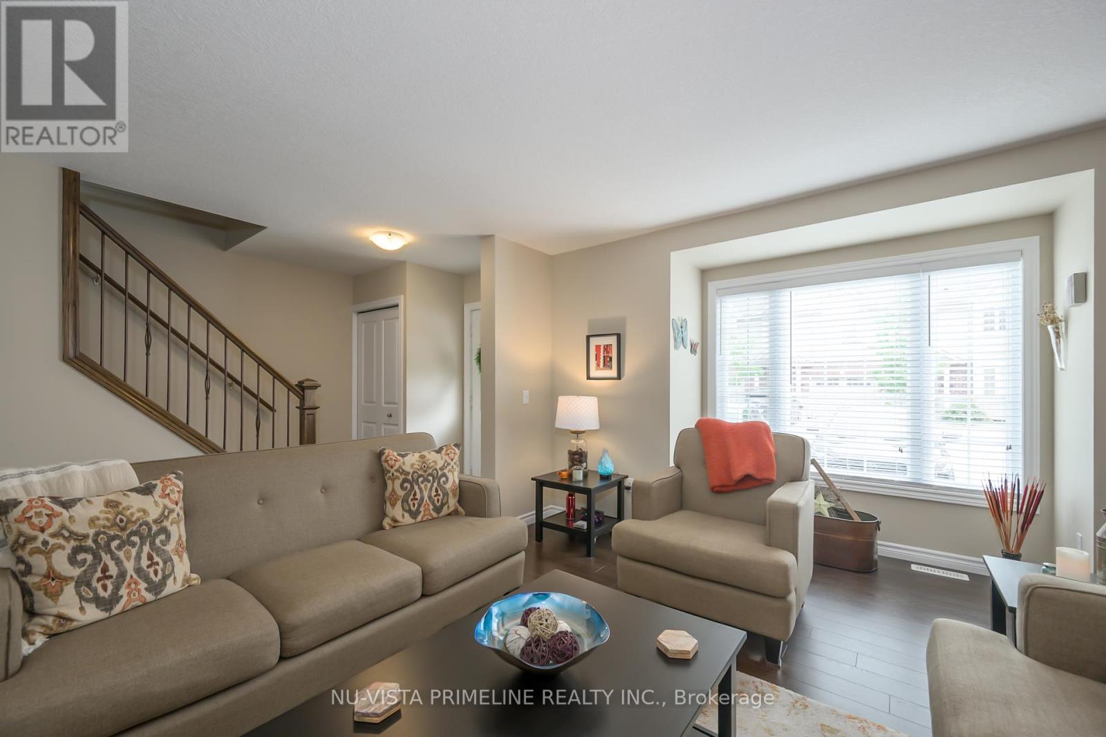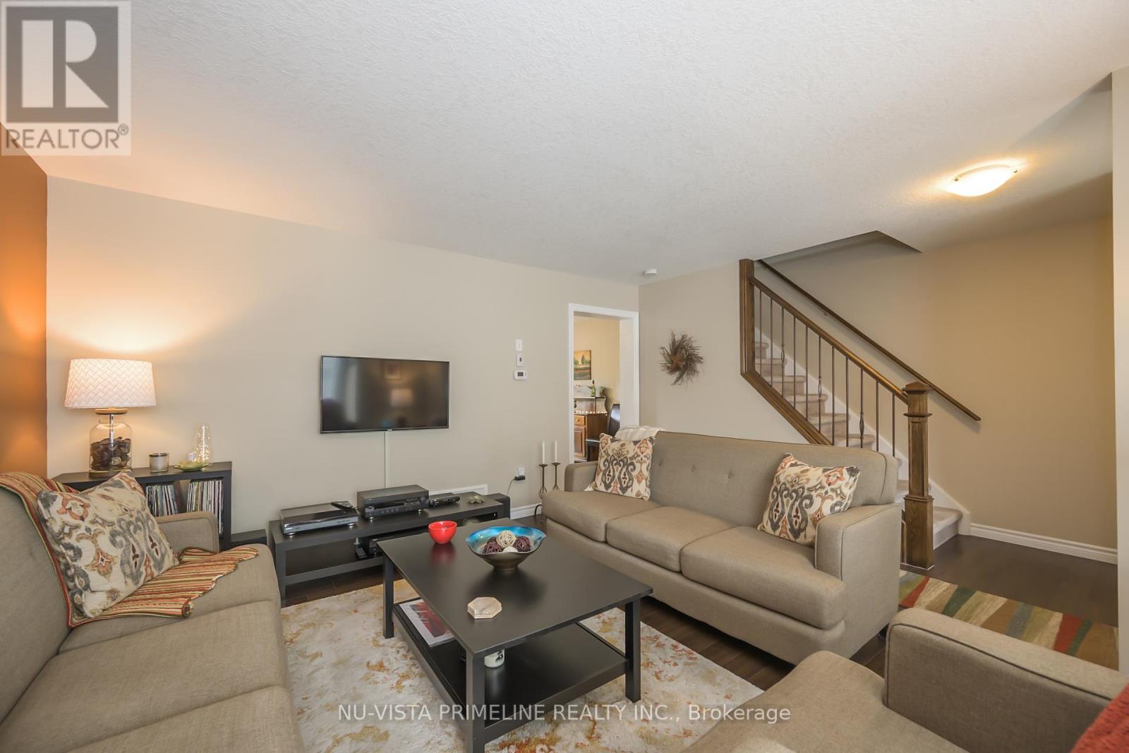 Ideally located in North London's Jacob's Ridge development, this spotless home backs onto a conservation area/RAVINE and walking trails. Enjoy views of the Stoney Creek Valley from your very own deck! Close to Western U, Fanshawe College and top-rated schools such as Stoney Creek Public School and Lucas Secondary School. The beautifully finished interior features laminate flooring in foyer and living room, vinyl and carpet thru out, complemented by a wood and wrought iron banister and railing. The entire unit has been freshly painted in a light, neutral tone. The kitchen boasts quartz countertops, double sinks, under cabinet lighting and plenty of cupboards. A south facing window in the large living area lets natural light flood into the space. Garden doors from the kitchen lead to a private deck offering a peaceful ravine view. Enjoy the convenience of a powder room on the main floor . Upstairs there are three bedrooms. The spacious primary bedroom has a very generous walk-in closet. The pristine main bath has a tub and shower, built-in shelving and a vanity for plenty of storage. Fresh wall-to-wall carpeting adds warmth and comfort to the bright, lower-level family room. Laundry is also on this level as well as rough-in plumbing for a third bathroom. There is plenty of storage too. Attractive stone and brick exterior. Two exclusive use parking spaces are right in front of the unit and there is plenty of visitor parking too. Natural Gas line with Weber BBQ included . Condo fee only $284.00/month. Quality built by Rembrandt Homes. Don't miss out on this lovely move-in ready townhouse. Book your showing today! (id:4069)