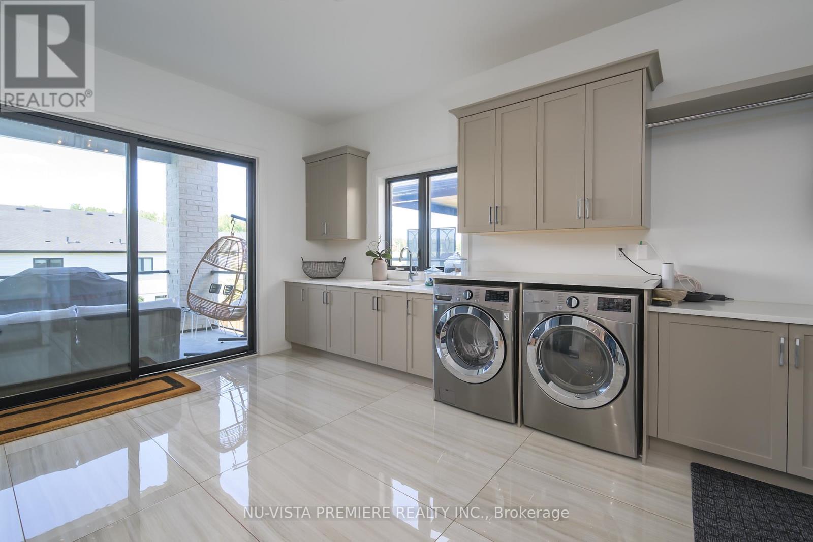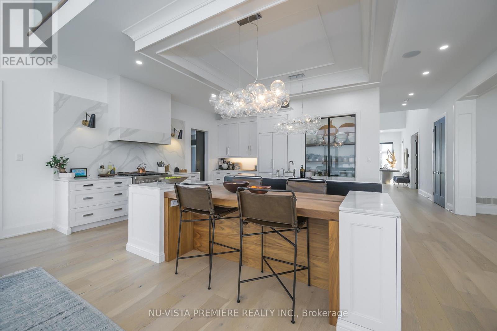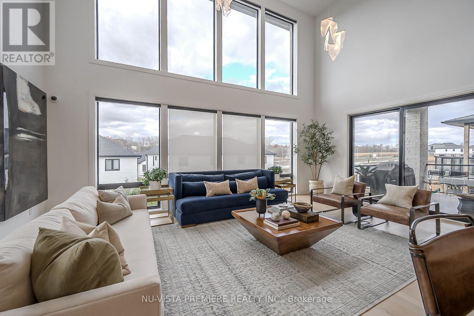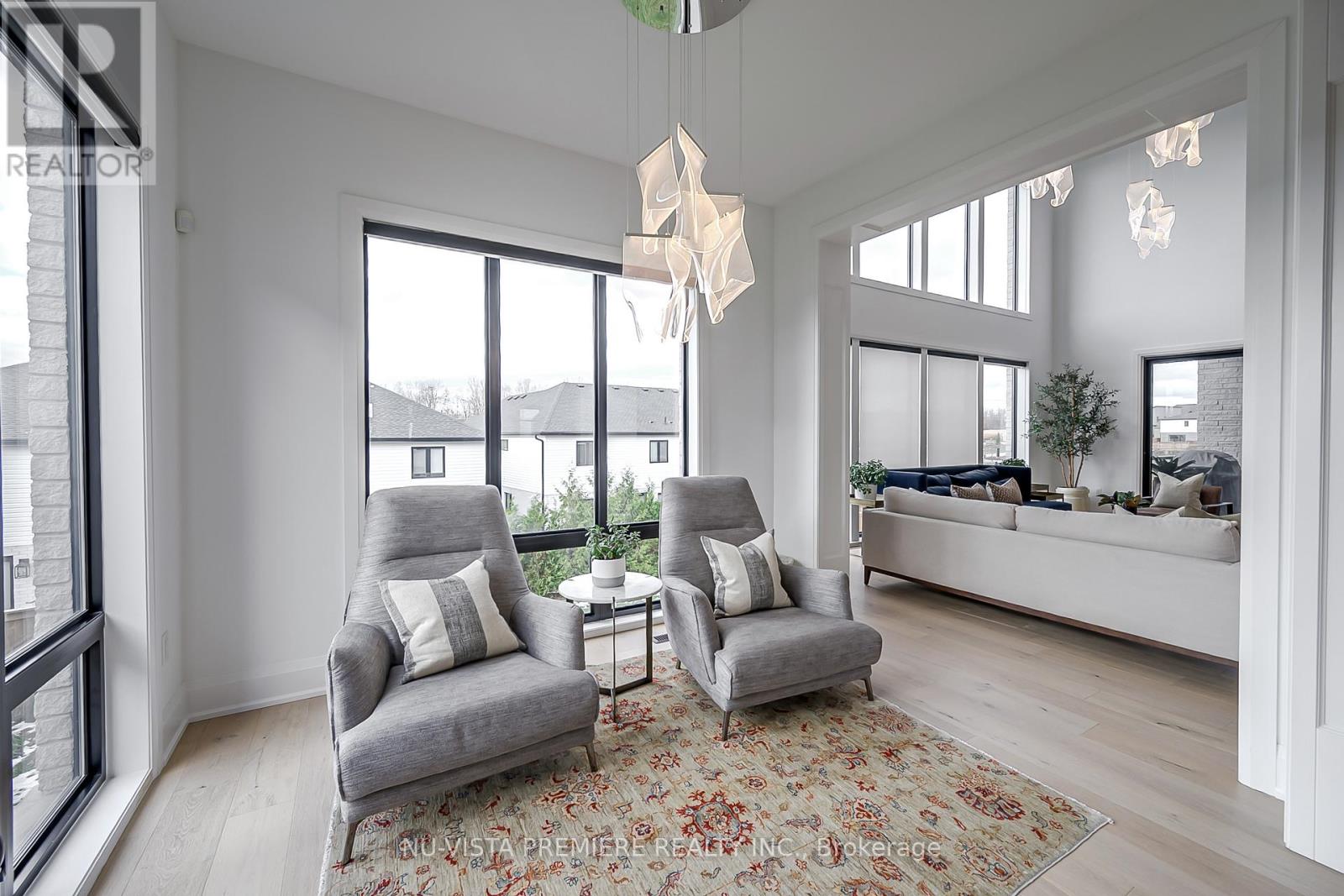 This custom Reis Design Built home with a premium lot size, exciting architectural detail & design elements. It has limestone facade & beautiful bay windows. The grand foyer features a sweeping showpiece staircase. In the study a rolling-ladder glides along an impressive library with stainless steel detail extending through double arched openings to a butler's servery and cast stone fireplace. Kitchen/great room offers two islands, one in rich walnut, glass-door pantry w/ walnut display shelves with windows draw an abundance of natural light. Incredible main floor laundry/mud room. 2nd floor landing opens to large living area with glass-railing floating above the great room & bathed in natural light. Two covered decks. Beautifully finished walkout lower level adds fantastic above-grade additional living. Fully private IN-LAW SUITE with kitchen, centre island, great room with fireplace, bedroom, bathroom washer dryer with independent fob access. The in-law suite doesn't interfere with your basement use with home theatre/media room, 2nd lower bathroom and storage area. Fully fenced with cedar hedge/evergreen perimeter. Located in Silverleaf -South West London's executive neighbourhood, minutes to HWY 401. (id:4069)