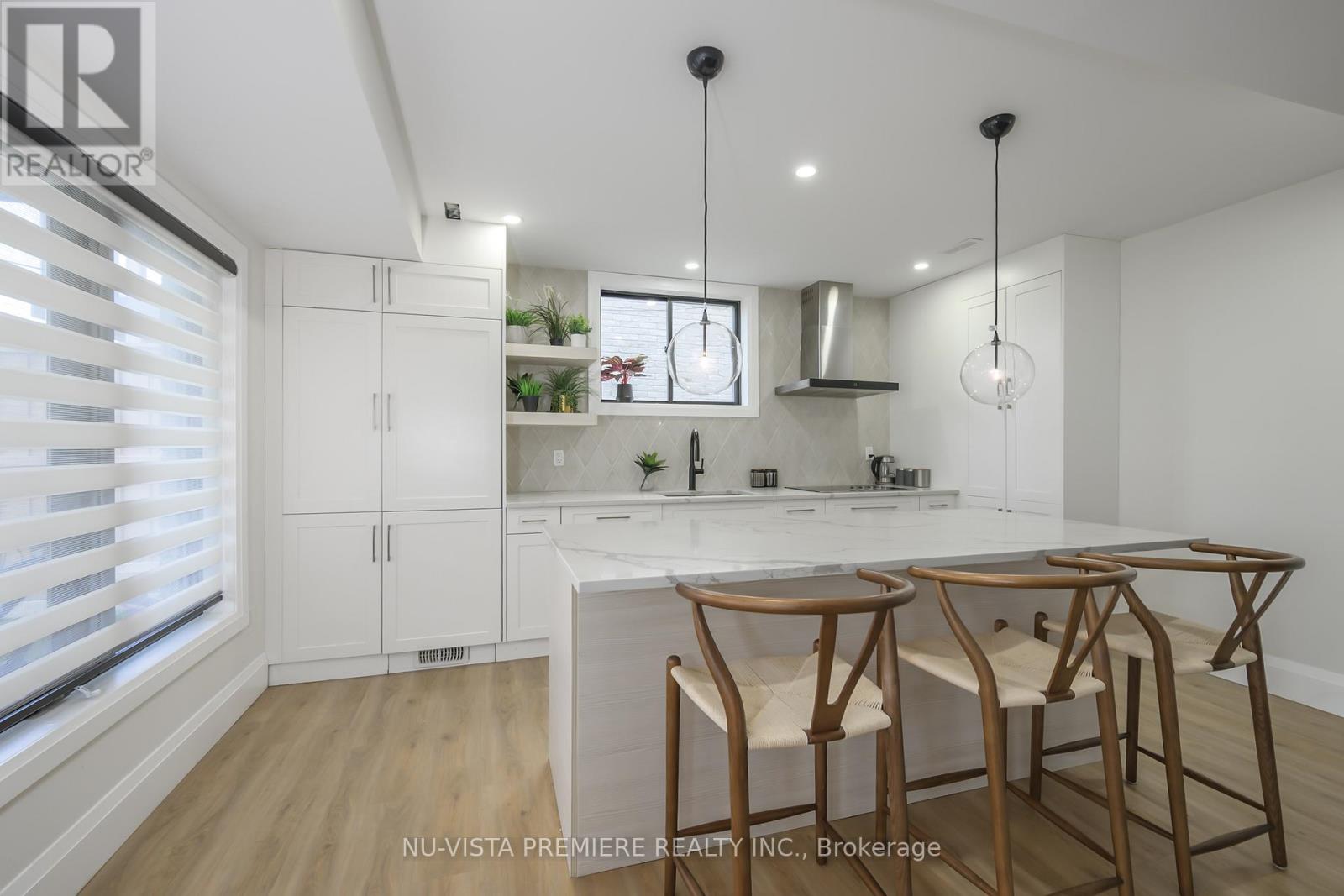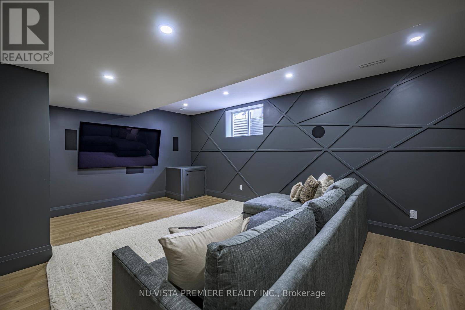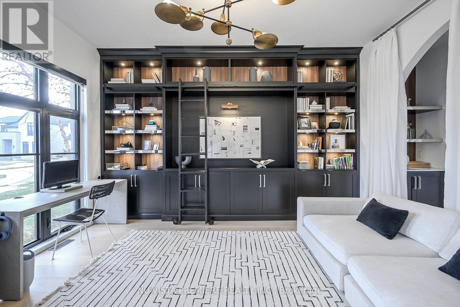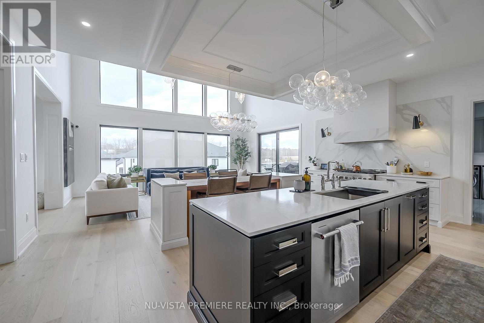 This custom Reis Design Built home with a premium lot size, exciting architectural detail & design elements. It has limestone facade & beautiful bay windows. The grand foyer features a sweeping showpiece staircase. In the study a rolling-ladder glides along an impressive library with stainless steel detail extending through double arched openings to a butler's servery and cast stone fireplace. Kitchen/great room offers two islands, one in rich walnut, glass-door pantry w/ walnut display shelves with windows draw an abundance of natural light. Incredible main floor laundry/mud room. 2nd floor landing opens to large living area with glass-railing floating above the great room & bathed in natural light. Two covered decks. Beautifully finished walkout lower level adds fantastic above-grade additional living. Fully private IN-LAW SUITE with kitchen, centre island, great room with fireplace, bedroom, bathroom washer dryer with independent fob access. The in-law suite doesn't interfere with your basement use with home theatre/media room, 2nd lower bathroom and storage area. Fully fenced with cedar hedge/evergreen perimeter. Located in Silverleaf -South West London's executive neighbourhood, minutes to HWY 401. (id:4069)