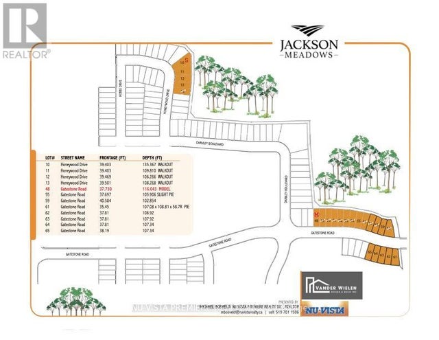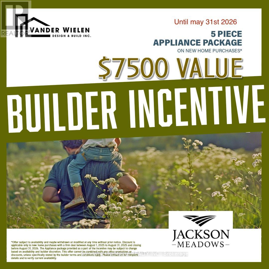 POND LOT! The OPAL model with1665 sq ft of Luxury finished area BACKING onto pond. Very rare and just a handful available! JACKSON MEADOWS, southeast London's newest area. This home features a grand two storey foyer. Quality built by Vander Wielen Design & Build Inc, and packed with luxury features! Choice of granite or quartz tops, hardwood floor on the main floor and upper hallway, Oak stairs, 9 ft ceilings on the main, deluxe "Island" style kitchen, 2 full baths upstairs including a 5 pc luxury ensuite with tempered glass shower and soaker tub and main laundry. The kitchen features a massive centre island and looks out on to a tranquil pond, making it an ideal place to call home. Large lot 38'2" x 107.9 ft lot backing onto pond and across the street from protected woods. NEW $28.2 million state of the art public school just announced for Jackson Meadows with 655 seats and will include a 5 room childcare for 2026 school year! This home is to be built and photo is of similar model. SPECIAL BONUS: 5 pc appliance package valued at $7500. Included in all homes purchased between April 5th and May 30th 2026. See listing agent for details. (id:4069)